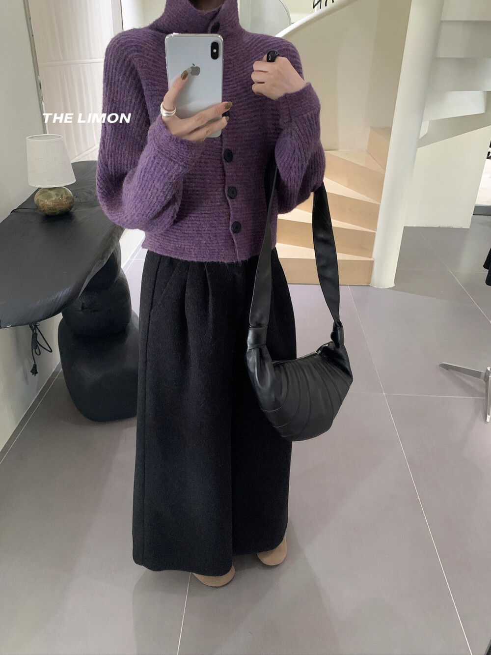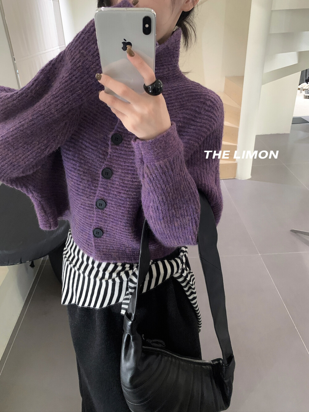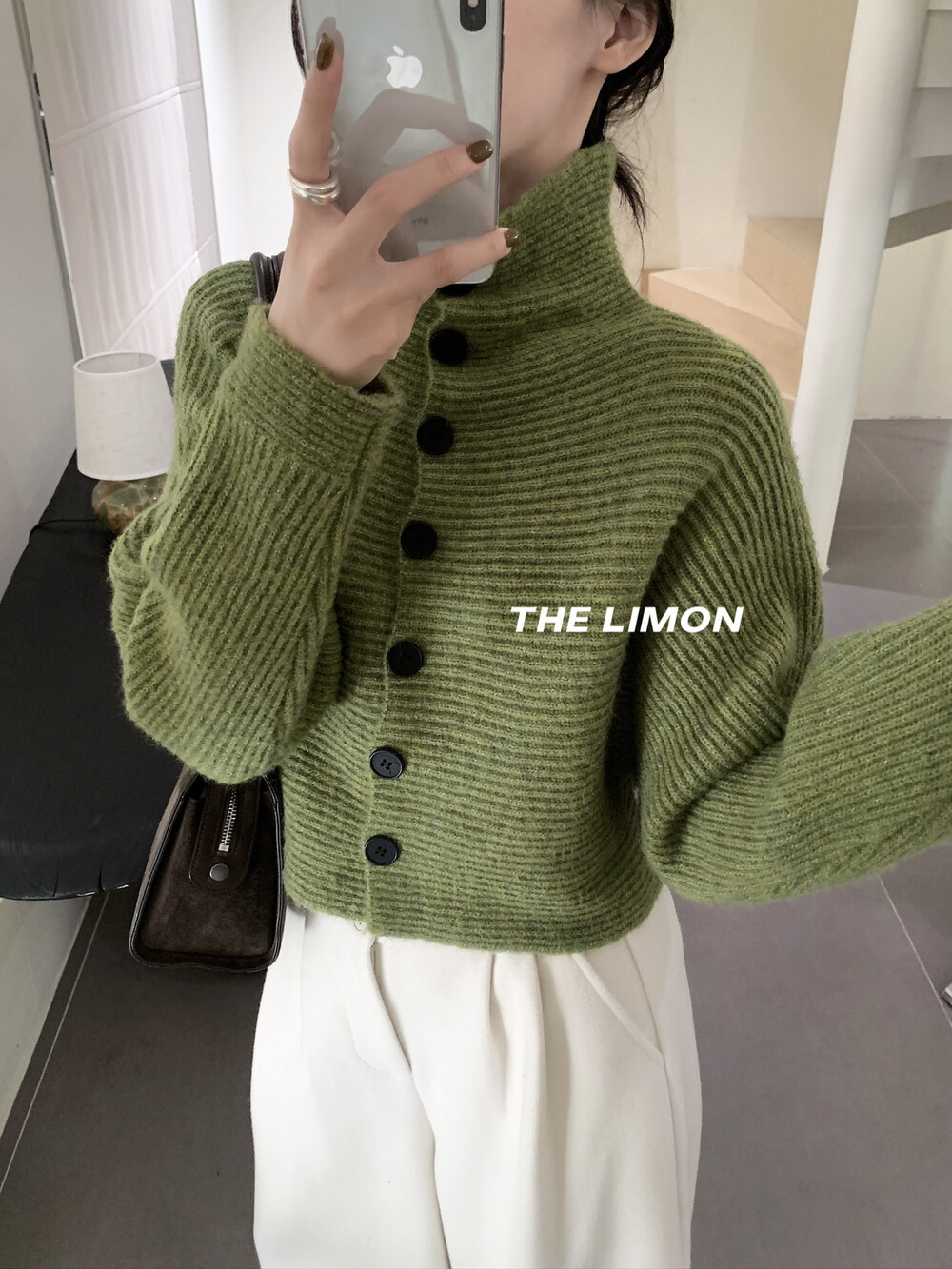 Loose Fit High Neck Long Sleeve Knit Cardigan Sweater