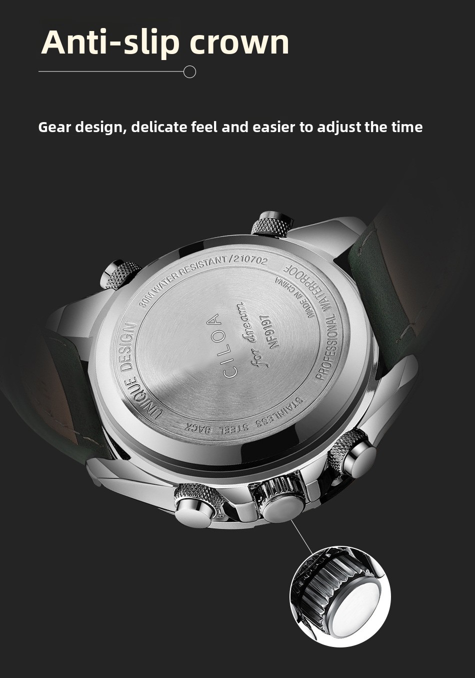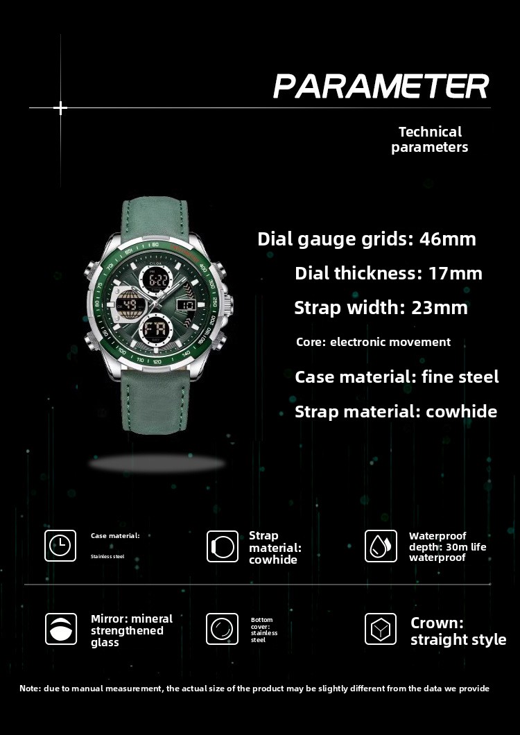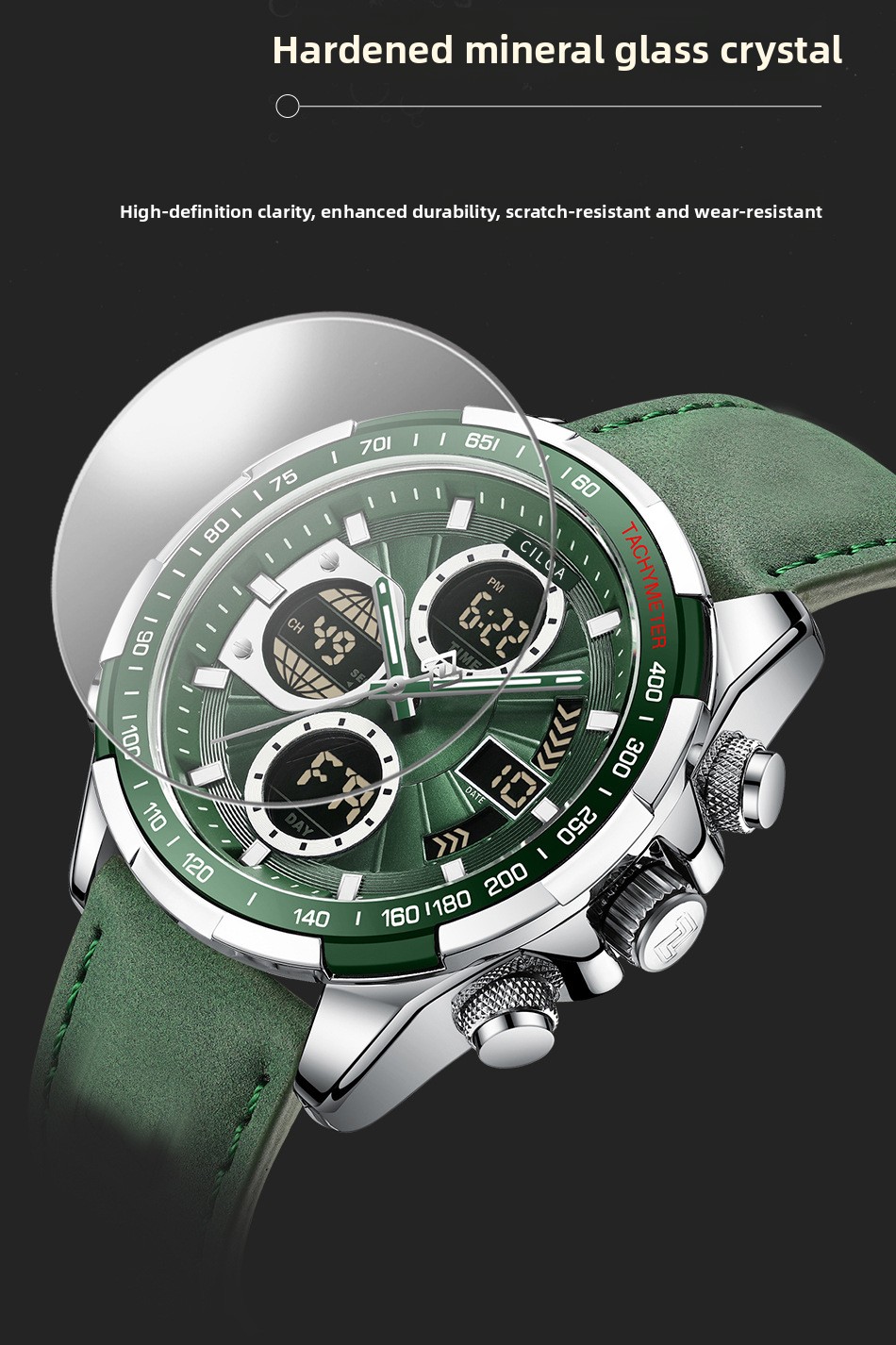 Durable Materials: Features a mineral reinforced glass mirror and genuine leather strap or fine steel case for longevity.