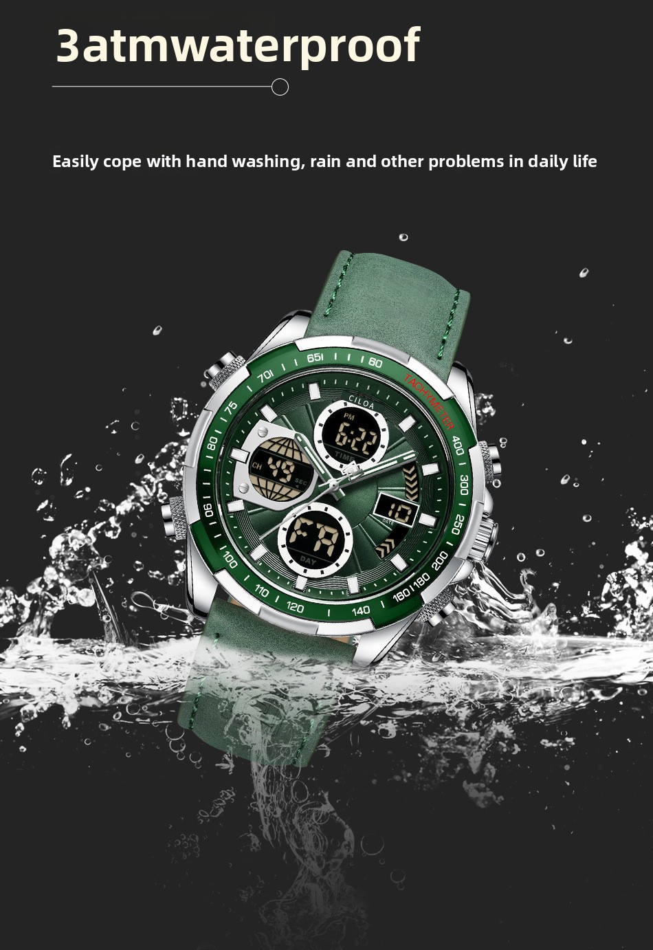 Waterproof: Designed to withstand water exposure, suitable for daily wear.
