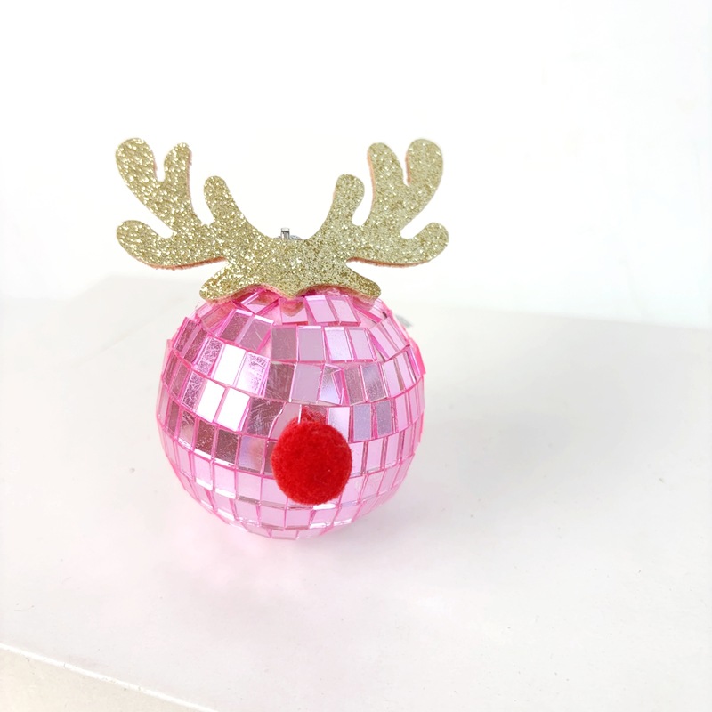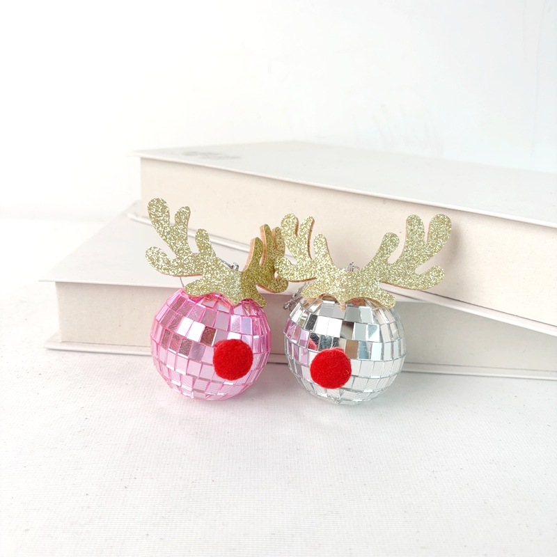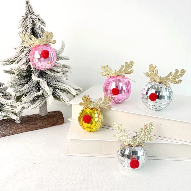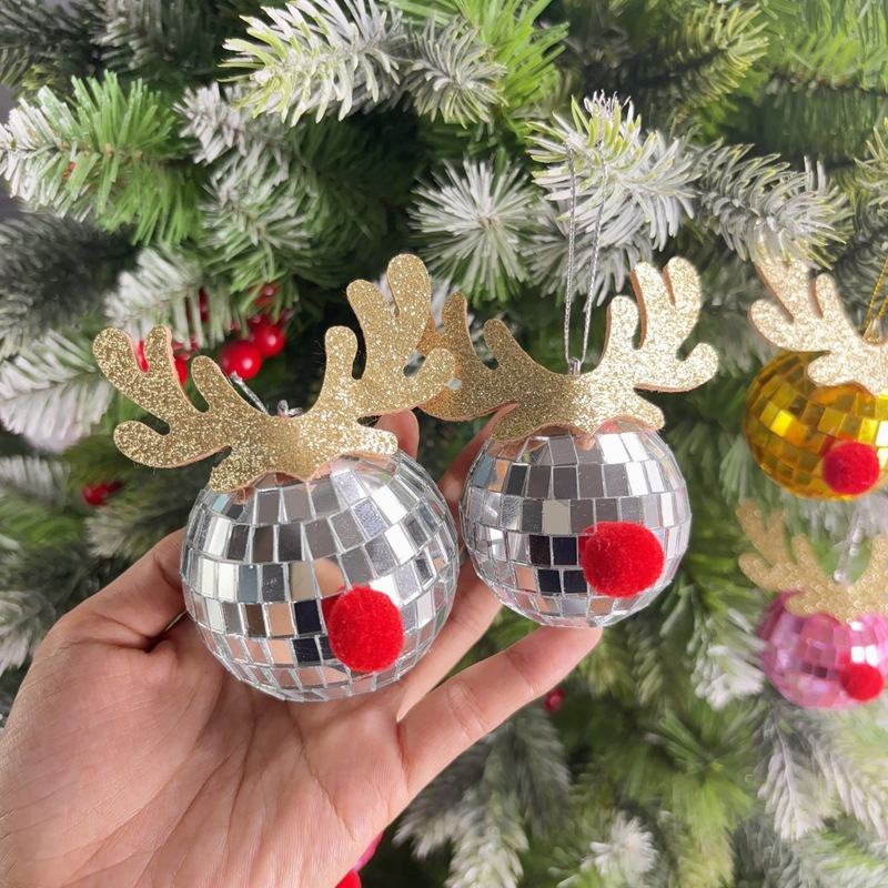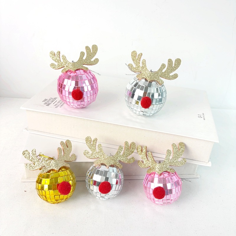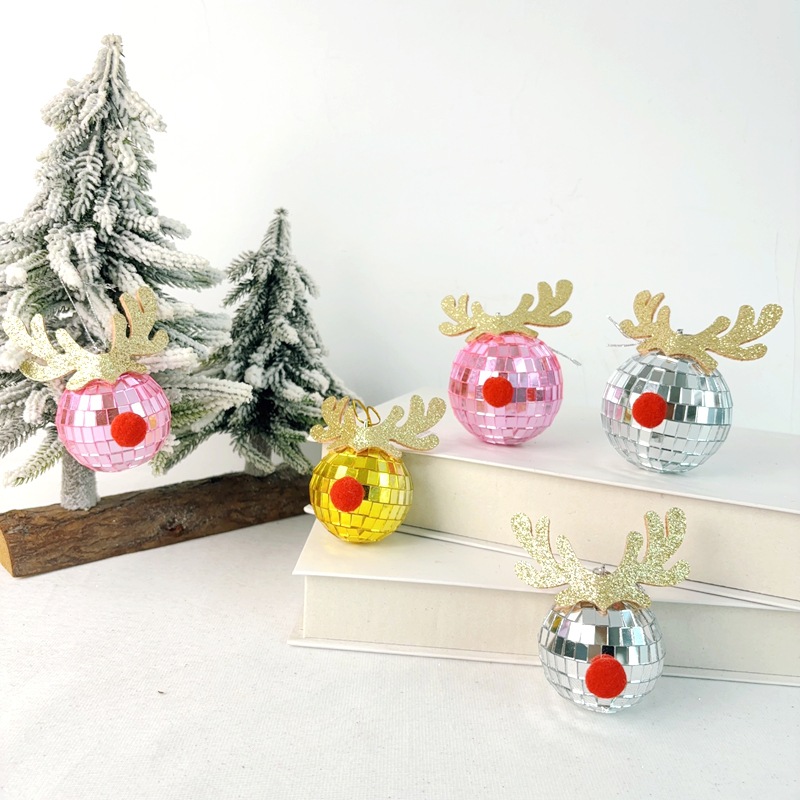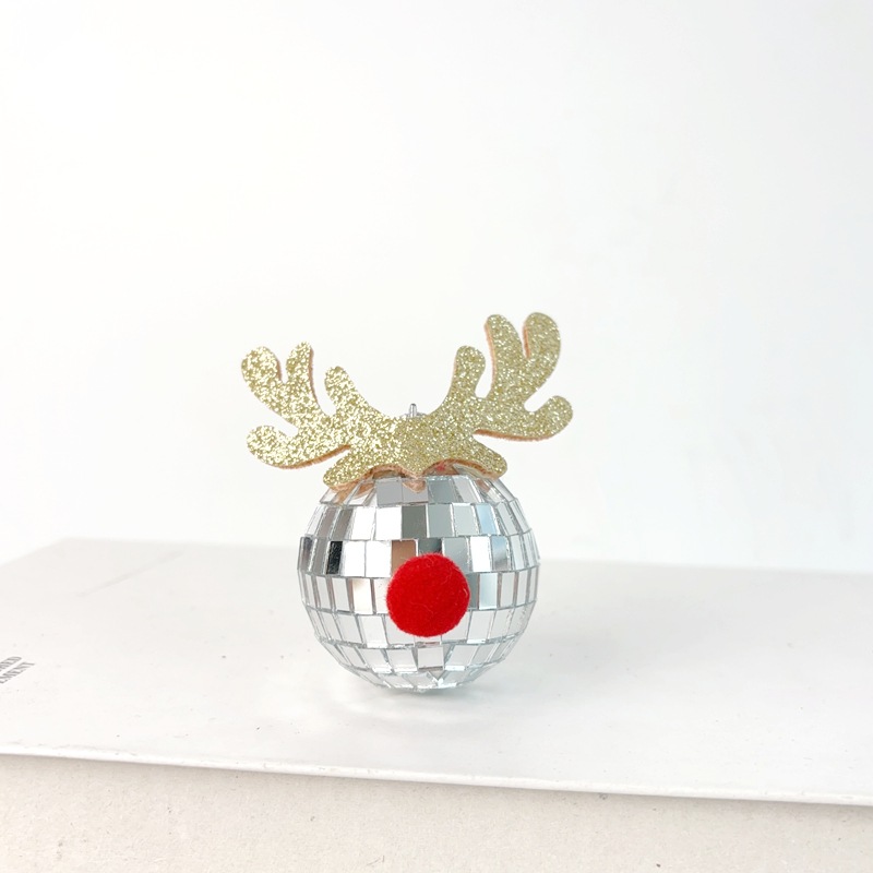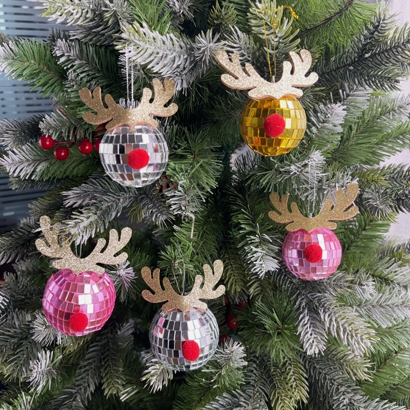Festive Decor: Eye-catching disco mirror elk horn design perfect for Christmas parties and tree decorations.