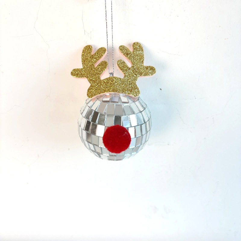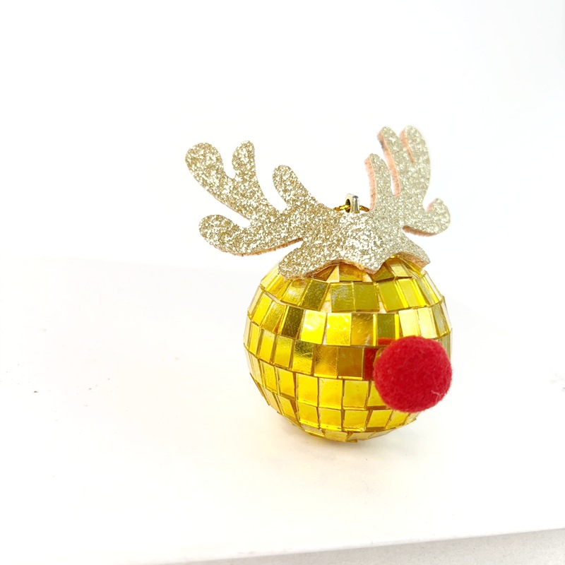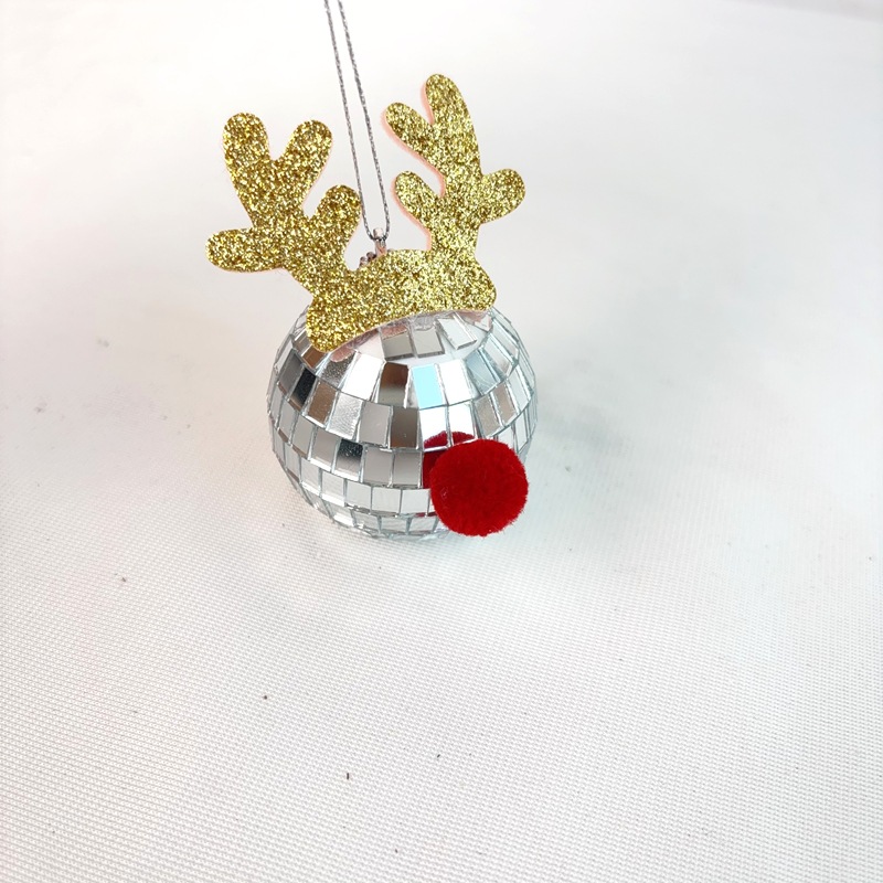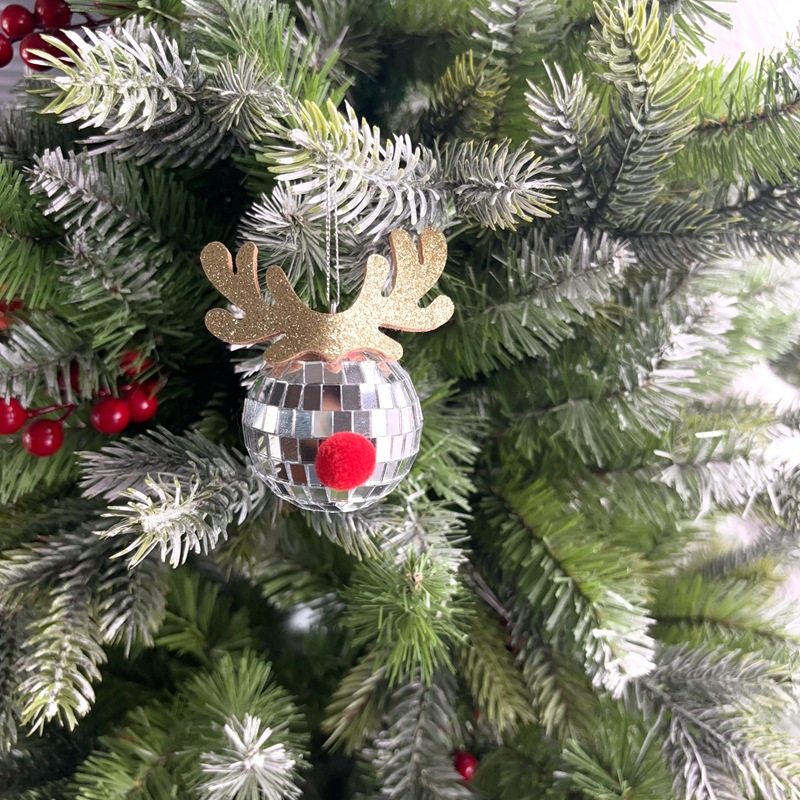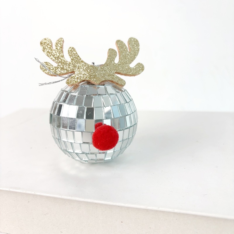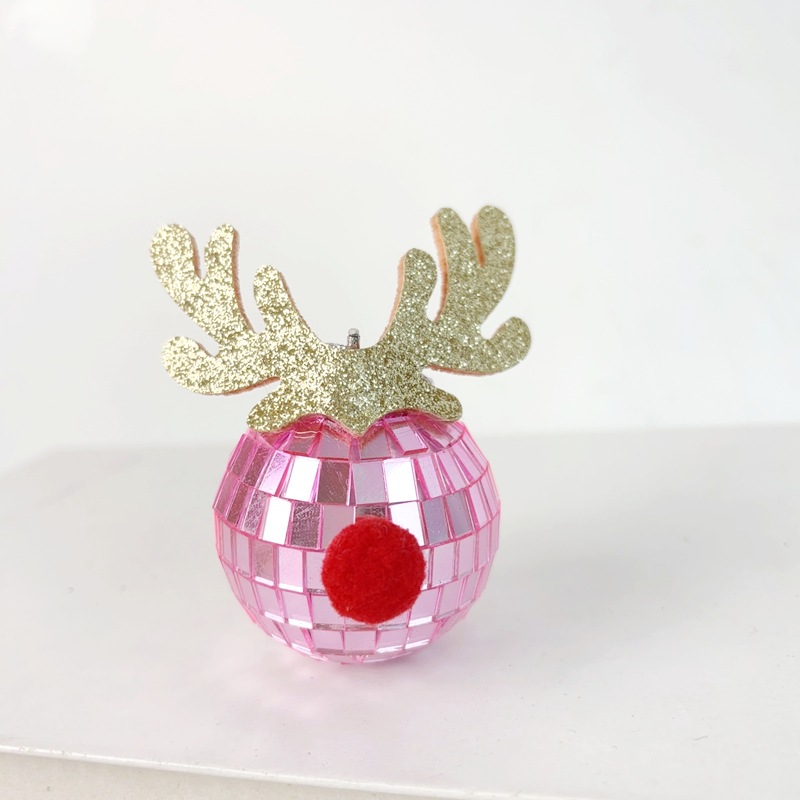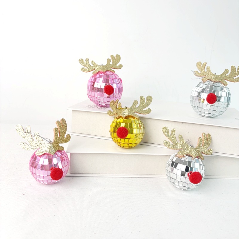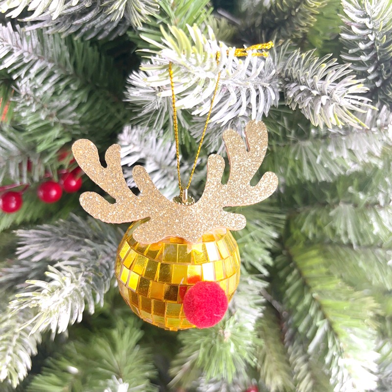 Festive Decor: Eye-catching disco mirror elk horn design perfect for Christmas parties and tree decorations.