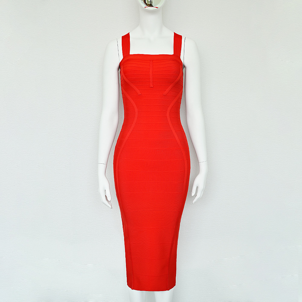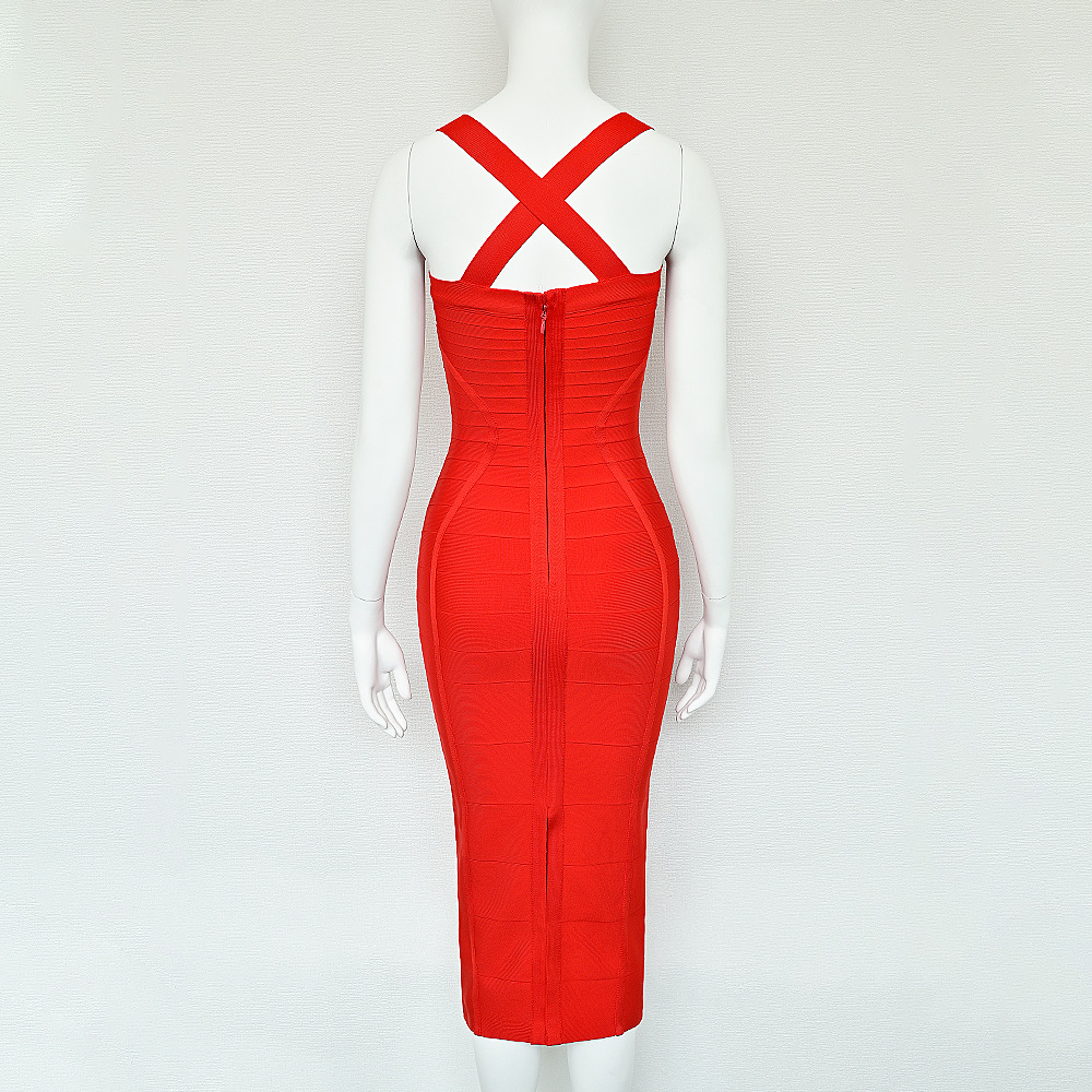 Red Slim-fit Bandage Sling Dress